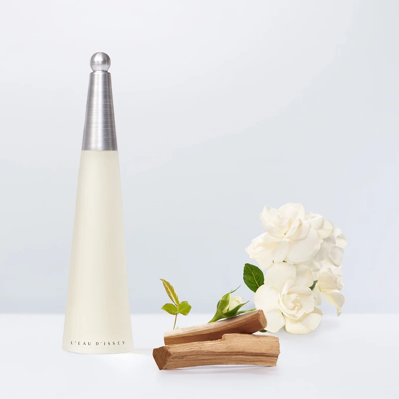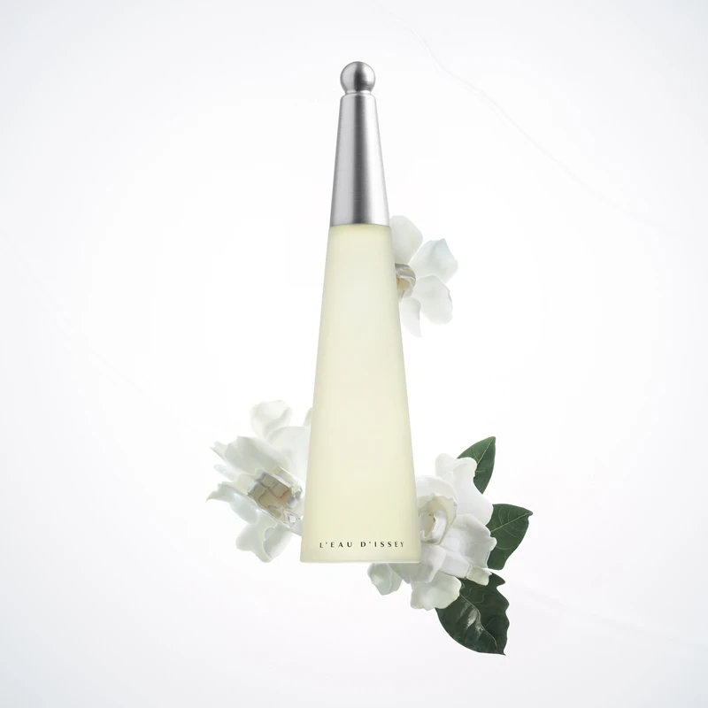 Le flacon est parfaitement révélateur du parfum aqueux et fleuri qu’il renferme. Issey Miyaké souhaitait créer un parfum pur comme l’eau au printemps et frais comme les bois printanier. La fragrance Issey Miyake L’Eau d’Issey a été créée en 1992.